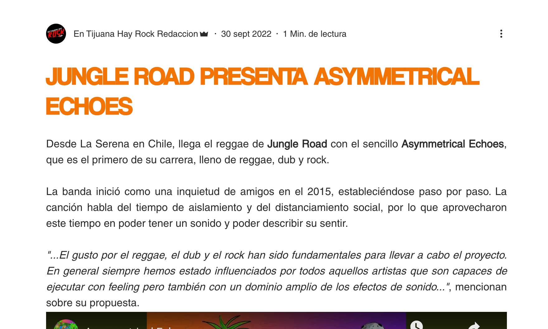 After this performance, the band released the first single from their album, “Asymmetrical Echoes,” for the first time on streaming platforms. This new version featured remixing and remastering of the original demo, along with new arrangements and tones. Andrés and Lalo’s extended travels outside of Chile in the latter half of 2022 led the band to go on hiatus for several months. Consequently, at the beginning of 2023, the band stepped away from the stage to focus on quietly finishing writing what would become their first album, “Jungle Road.”